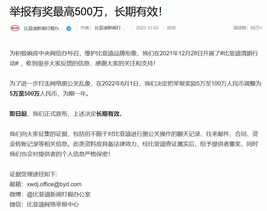 比亞迪重拳打擊網(wǎng)絡(luò)黑公關(guān) 公布多起維權(quán)成果并持續(xù)重金懸賞線索