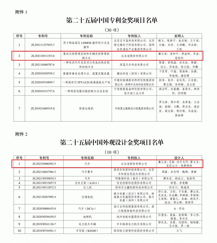2項金獎!比亞迪再獲國家級專利殊榮