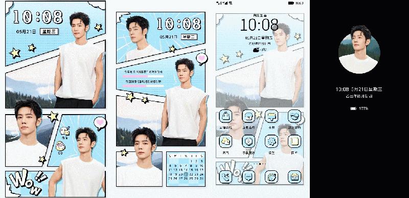 該主題采用極簡美學,大面積應用藍白色調,象征夏日晴空,并以留白手法打造空間延伸感,表達“未來廣闊”的意境。同時,將代言人元素融入,結合鎖屏、圖標、桌面小組件等創新動效,讓用戶在方寸屏幕間感受陽光活力,帶來實用功能與美學享受的雙重體驗。
