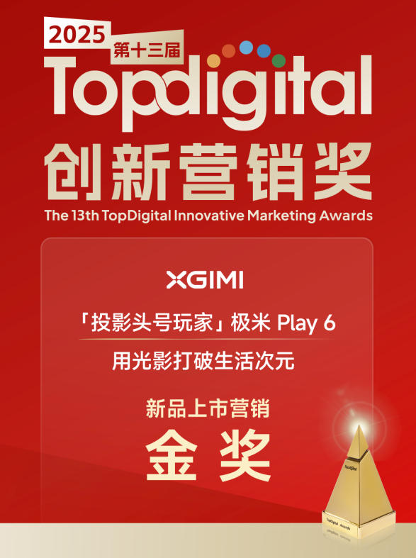 極米Play 6斬獲2025第十三屆TopDigital創(chuàng)新?tīng)I(yíng)銷金獎(jiǎng)
