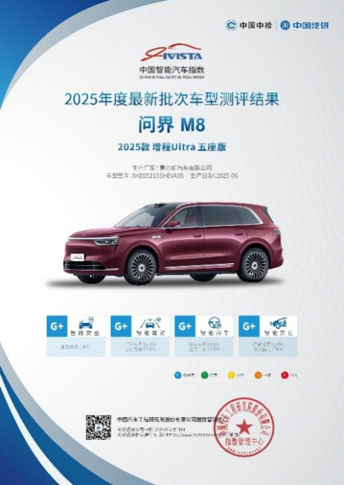 華為乾崑加持!問界 M8 斬獲 IVISTA 智能汽車指數滿分評價
