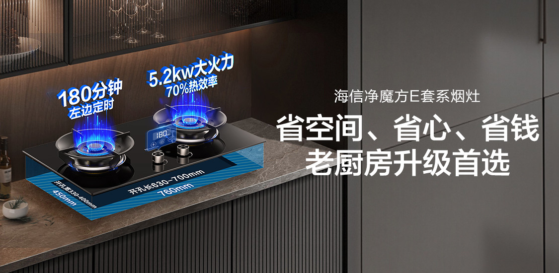 海信凈魔方E套系煙灶:完美嵌入+頂側(cè)三吸+變頻強排,換新首選一步到位