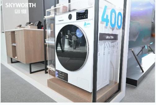 創維滾筒洗衣機,展出產品配備彩色觸控屏,容量覆蓋6至12公斤,提供母嬰護理、快洗、輕柔等多種洗滌模式,并具備UV除菌、高溫殺菌、筒自潔等智能功能,全面覆蓋不同用戶需求。其中40cm超薄洗衣機尤其受到歐洲市場歡迎,成為當季熱銷產品。