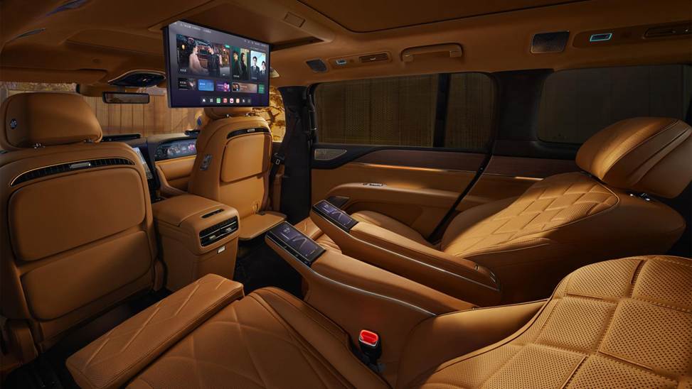 仰望U8L擁有鼎級空間表現,采用2+2+2靈活布局。二排雙零重力座椅支持150°大躺角,配備腳托與18點按摩系統,消除疲憊,輕松上路。二排創新推出三種專屬模式:云臥觀影模式打造移動私人影院,一鍵舒躺模式提供安心休憩空間,全平躺椅模式變身雙人沙發床。