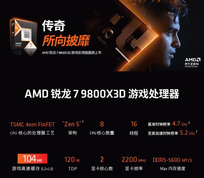 攢機季首選游戲神U AMD銳龍7 9800X3D好價推薦