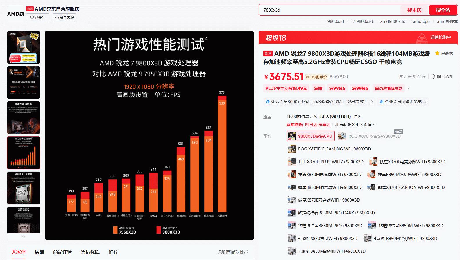 目前AMD銳龍7 9800X3D處理器在京東自營旗艦店3C數碼開學季的最新報價是3699元,京東PLUS會員到手更加優惠。成為京東旗艦店會員還有0元入會抽100元E卡,首購返666京豆和曬單抽AMD周邊等活動。近期AMD銳龍7 9800X3D處理器的價格在下調了200元之后都比較穩定,這樣更能凸顯出這款游戲神U的質價比了,近期準備攢機的DIY玩家值得最優先考慮。