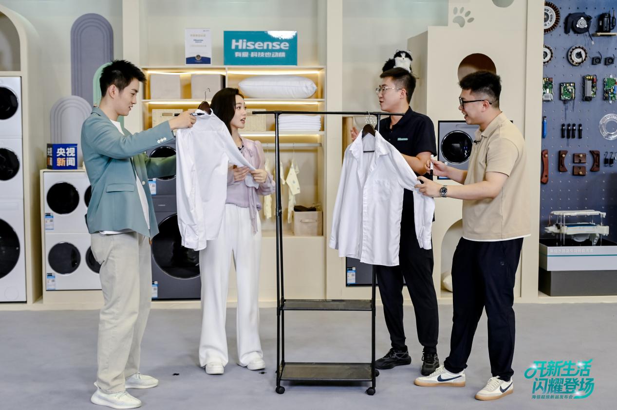 然而,當“分區洗護”成為行業共識,新的問題也隨之而來:多個筒體如何真正實現健康隔離?烘干技術能否在保證效率的同時保護面料?節能環保與使用體驗能否兼得?正是在這樣的行業背景下,9月29日央視“開新生活 閃耀登場”的直播間里,一場看似輕松的互動展示給出了答案。當海信洗衣機發布“洗衣疊疊樂”“數褶皺”“除毛屑”等挑戰任務時,每一個實驗細節都在揭示同一個真相:技術創新不應停留在功能堆砌,而應回歸用戶體驗的本質改善。